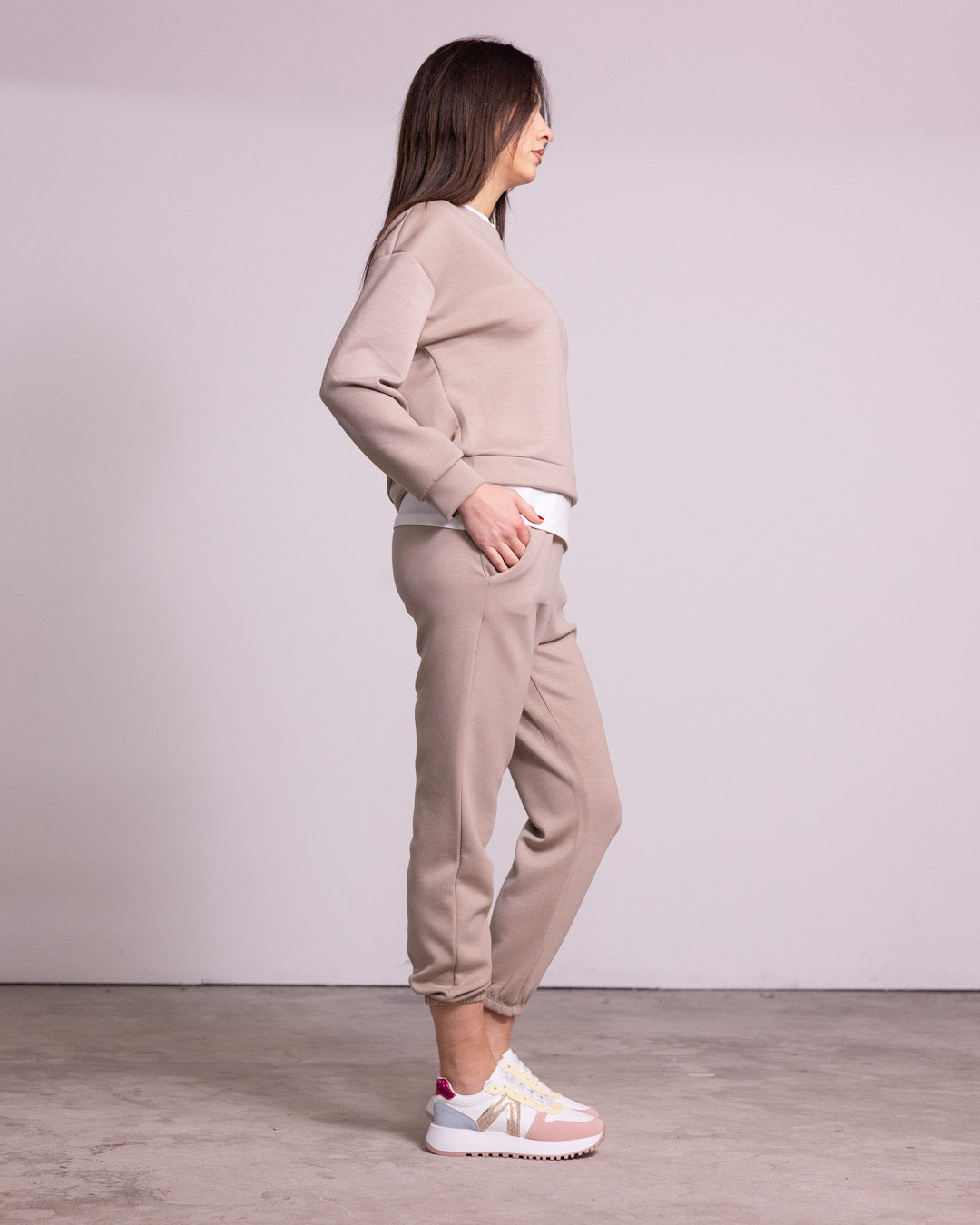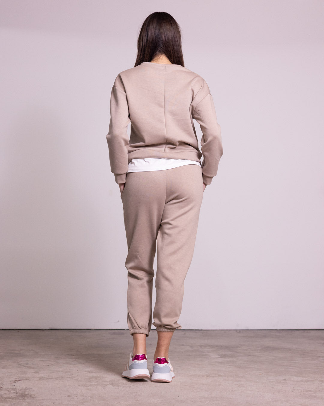 One Size Fits Most isn't a single size, but rather a garment designed to fit a wide range of sizes, typically from S to L (from 36/38 to 44/46 in Italy). Its versatility is ensured by the use of stretch fabrics and a design that allows for a variety of body types to wear the garment.