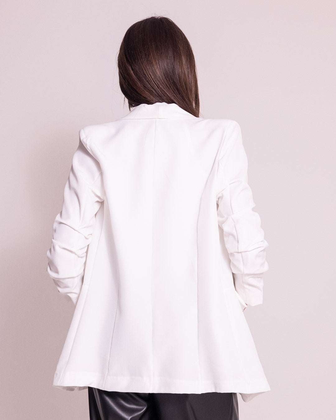 Blazer elegante con maniche arricciata, perfetto per creare look sofisticati e raffinati. Il dettaglio della manica arricciata aggiunge movimento e personalità al capo, rendendolo versatile per occasioni formali e casual. Realizzato con attenzione ai dettagli, questo blazer è un essenziale della moda che valorizza la silhouette con stile contemporaneo. Ideale per chi ricerca un capo di qualità che combina eleganza e praticità.