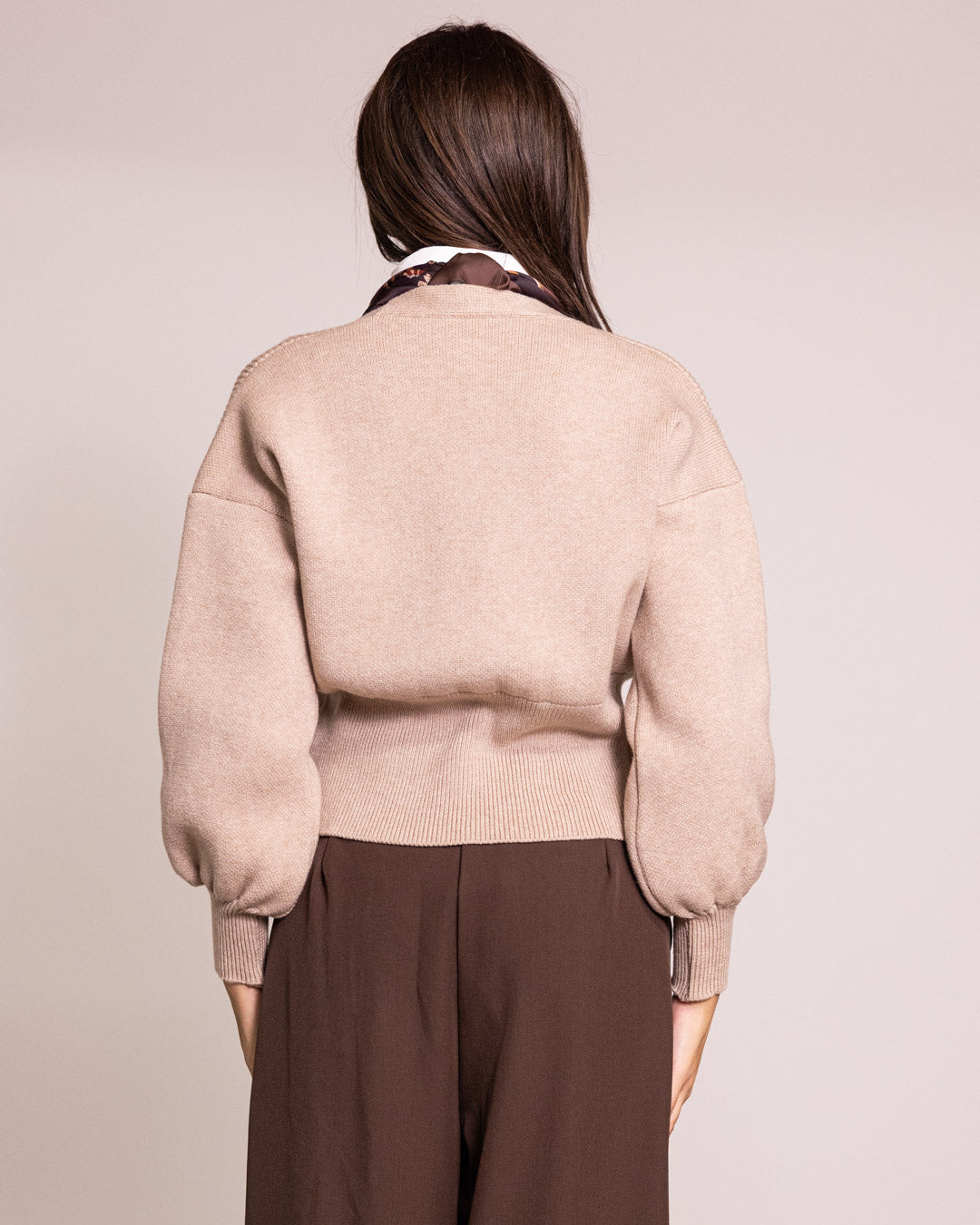 Cardigan elegante realizzato in morbido tessuto, caratterizzato da una sofisticata chiusura a spilla che aggiunge un tocco di raffinatezza al vostro guardaroba. Il design versatile lo rende perfetto per occasioni formali e casual, permettendovi di regolare facilmente l'apertura secondo le vostre preferenze. La spilla decorativa funge sia da elemento funzionale che estetico, conferendo al capo un'allure distintiva. Ideale per stratificare durante le stagioni di transizione, questo cardigan combina comfort e stile senza compromessi.