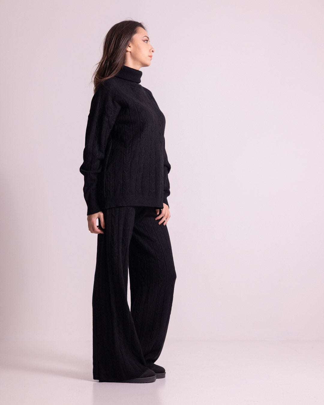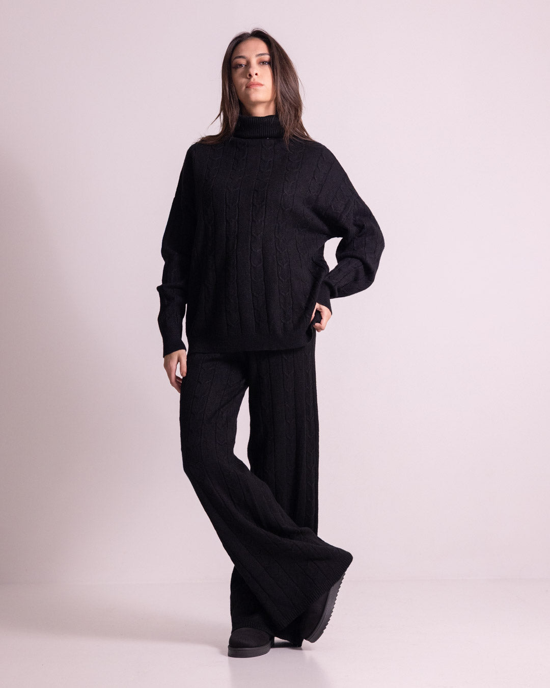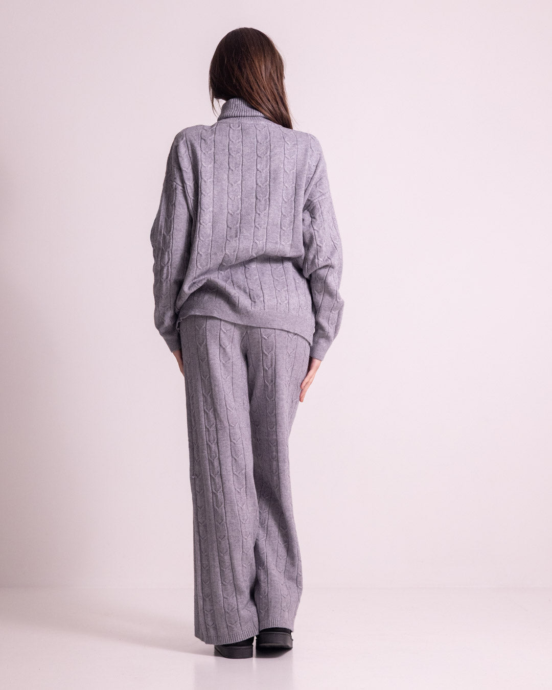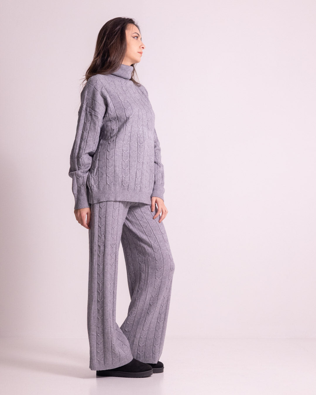 Completo in maglia realizzato in pregiato filato che garantisce calore e comfort durante i mesi più freddi. Il collo alto protegge efficacemente dal vento, mentre la lavorazione a trecce aggiunge profondità e texture al design. Disponibile in taglia unica, si adatta a diverse morfologie grazie alla sua struttura elasticizzata. Pratico da indossare in molteplici occasioni, dal tempo libero agli impegni quotidiani, questo capo rappresenta un investimento versatile nel guardaroba invernale.