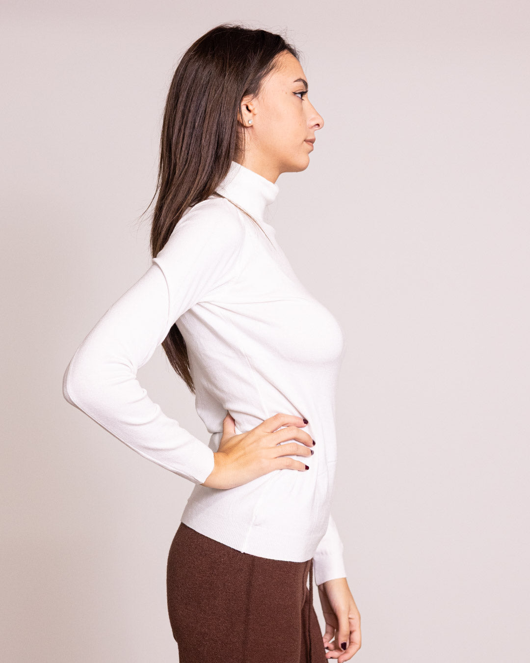 Questo dolcevita a collo alto presenta una lavorazione rasata che garantisce un comfort ottimale e una vestibilità elastica, capace di adattarsi perfettamente alla forma del corpo. Ideale per chi cerca un capo versatile e funzionale, assicura praticità senza rinunciare a uno stile elegante e raffinato.