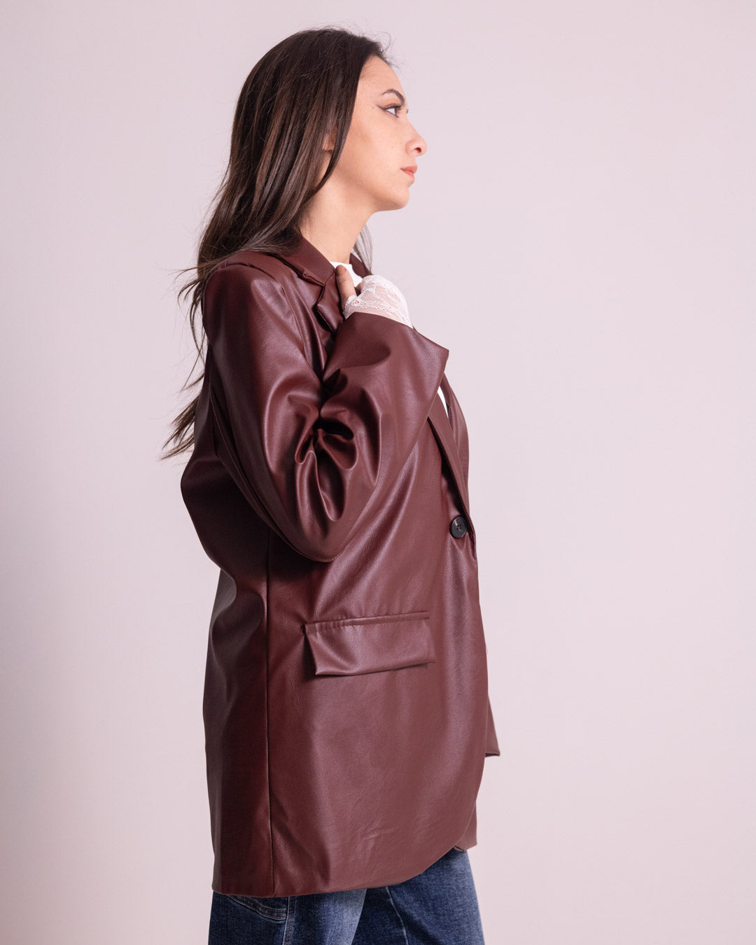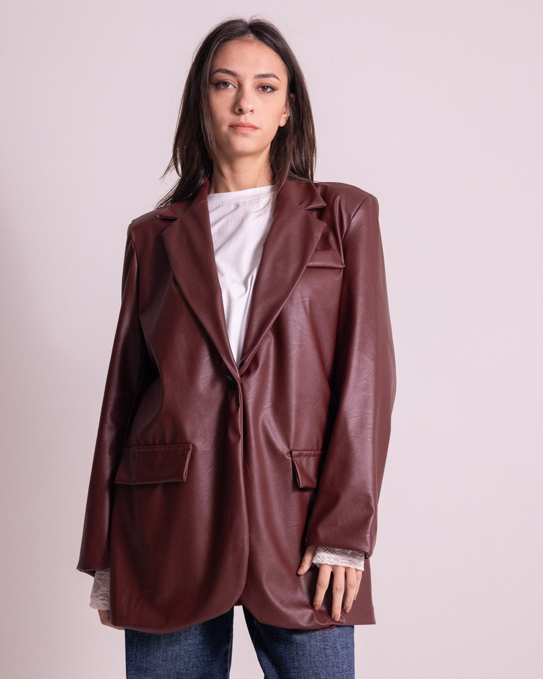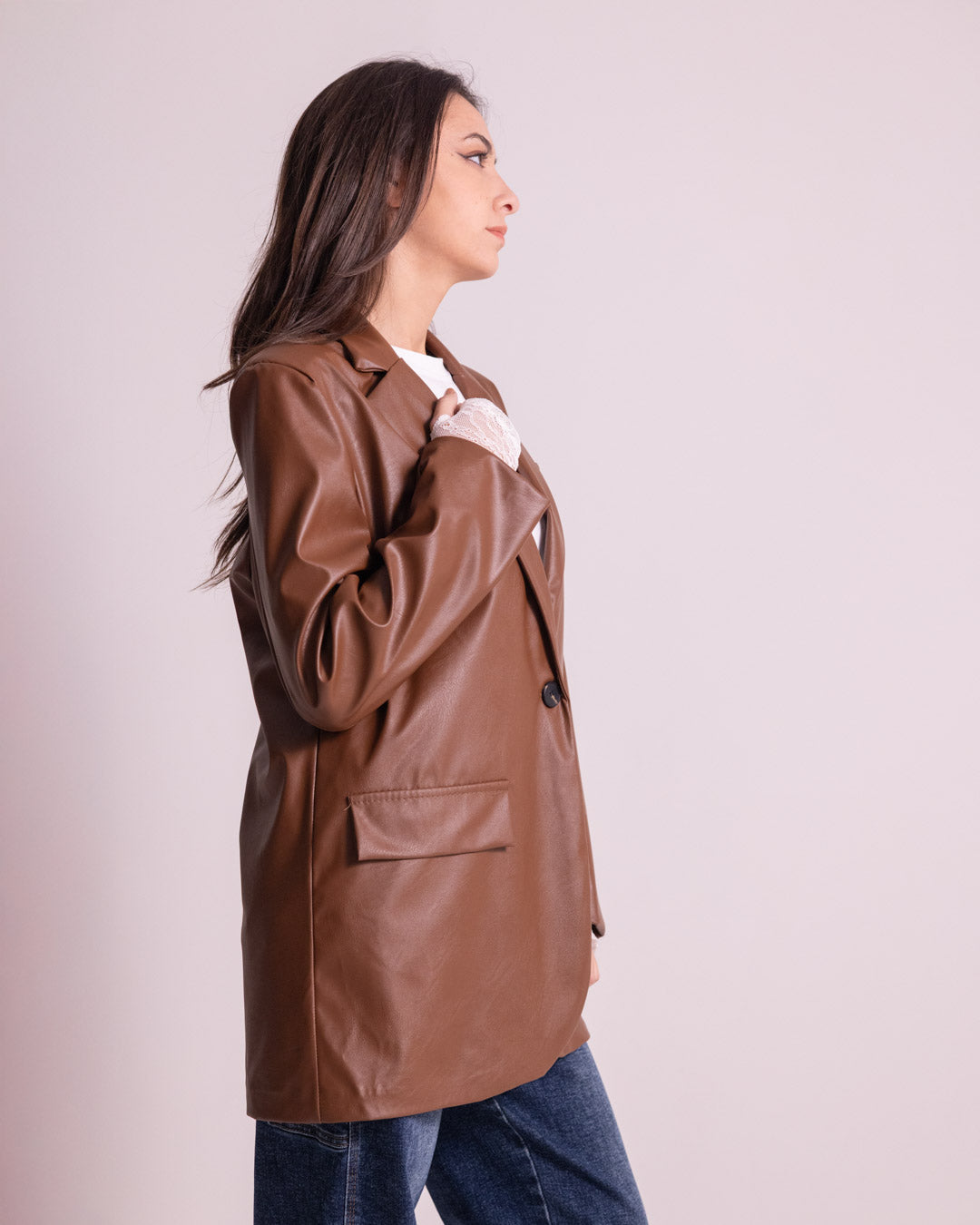 Giacca lunga in ecopelle