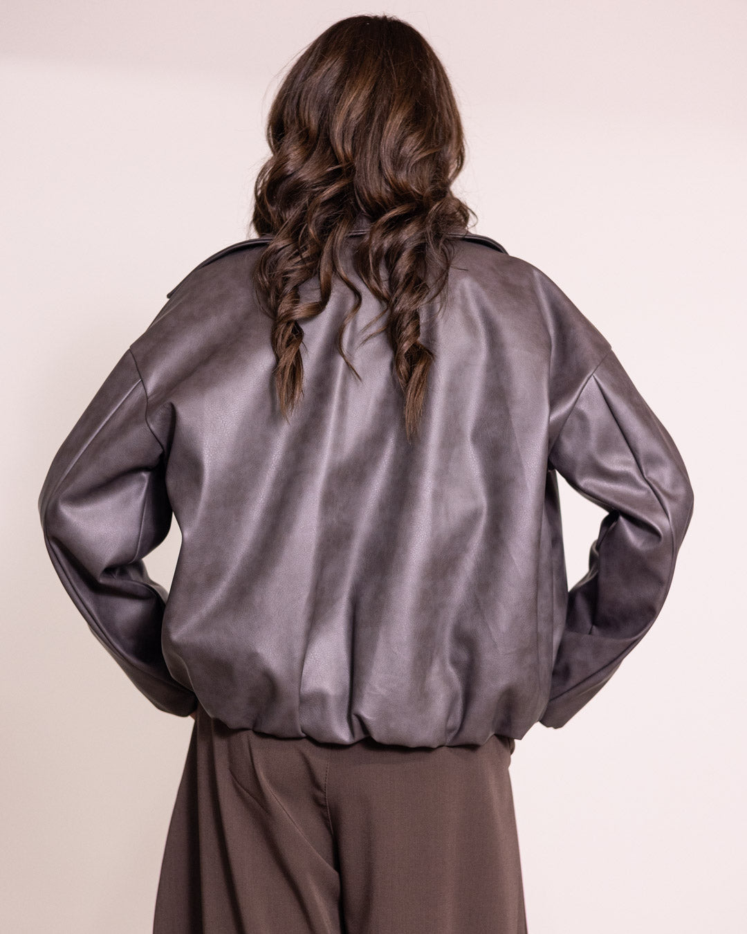 Questa giacca oversize con zip in ecopelle rappresenta la scelta ideale per chi desidera un capo all'avanguardia e versatile. La linea ampia assicura comfort e libertà di movimento, mentre la chiusura frontale con zip garantisce praticità e un look moderno. Perfetta per completare outfit urbani e sofisticati, combina estetica contemporanea con materiali di qualità.