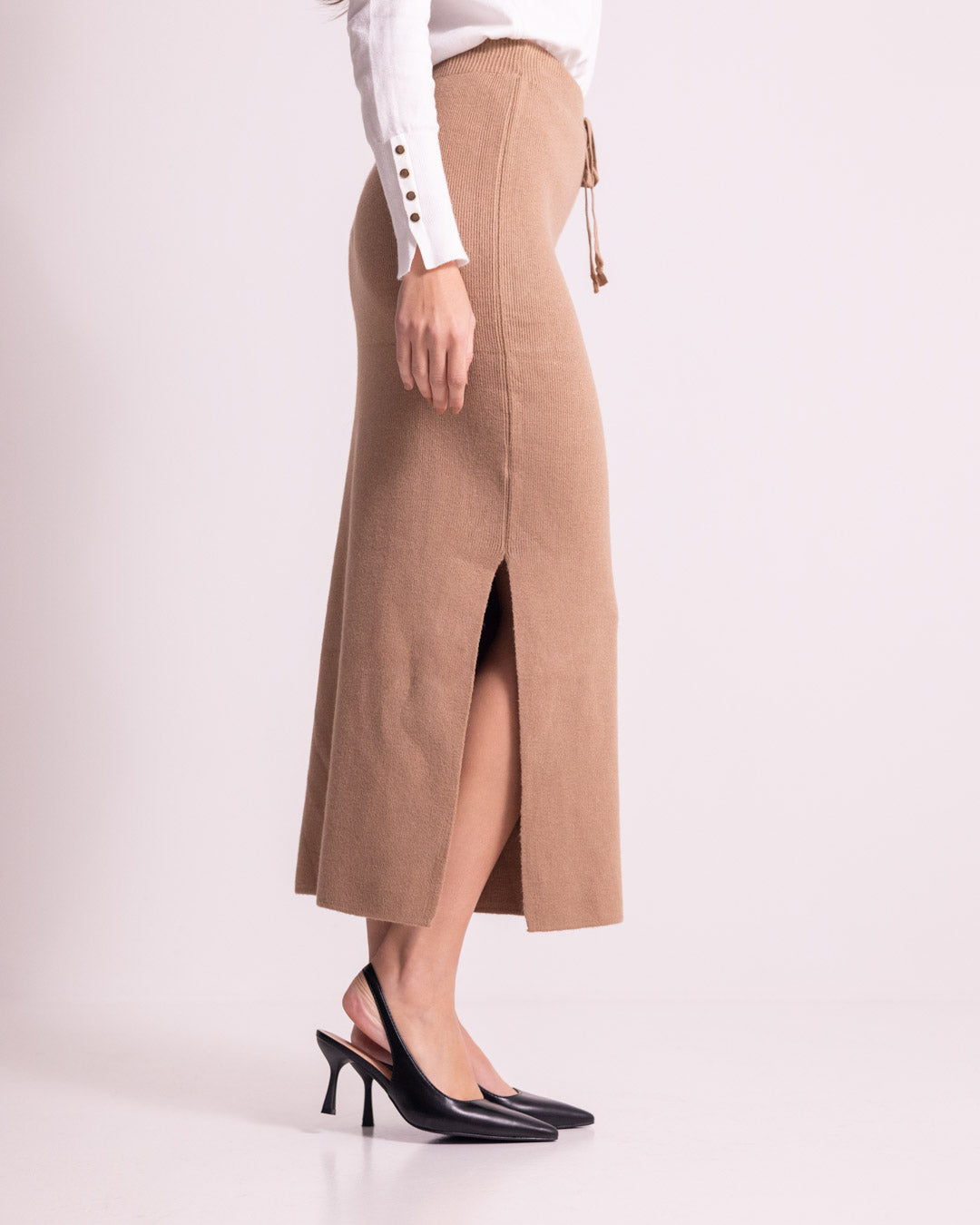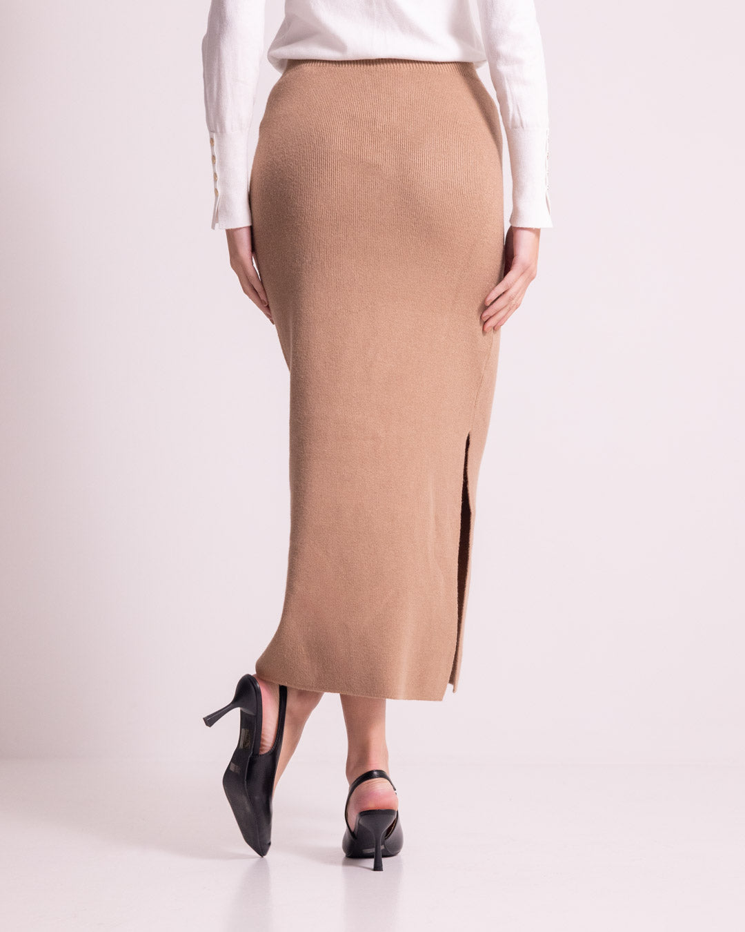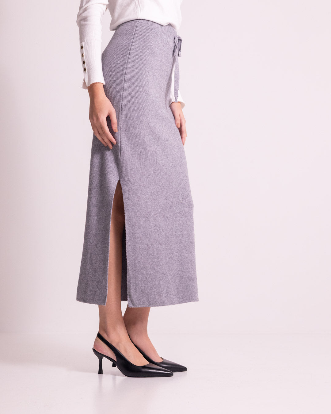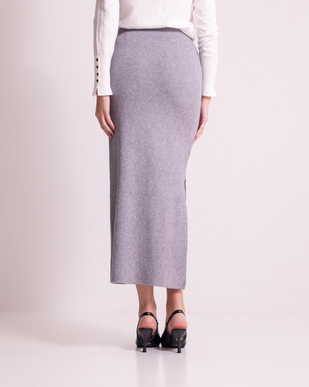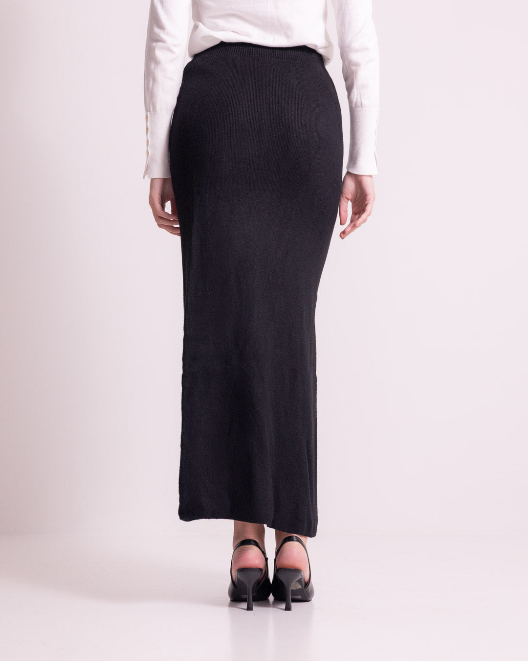 Gonna lunga in maglia che unisce praticità e eleganza senza sforzo. Realizzata in tessuto morbido e confortevole, si adatta perfettamente a qualsiasi silhouette garantendo libertà di movimento. Il design essenziale la rende versatile: indossala con una semplice t-shirt per il giorno o abbinala a un top raffinato per la sera. Ideale per chi ricerca capi che passano senza problemi dalla routine quotidiana a occasioni più curate, mantenendo sempre uno stile sobrio e contemporaneo.