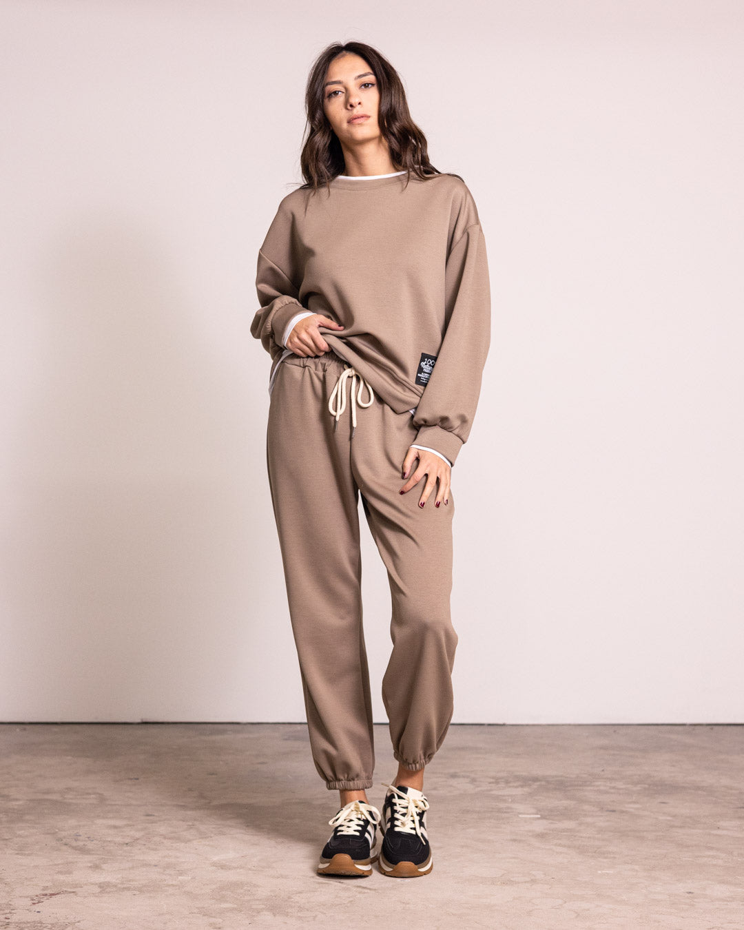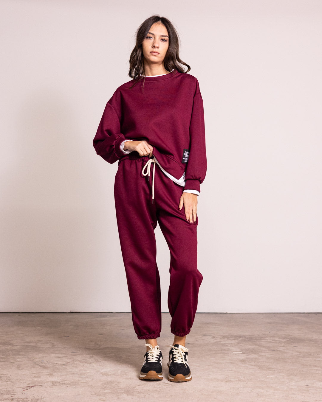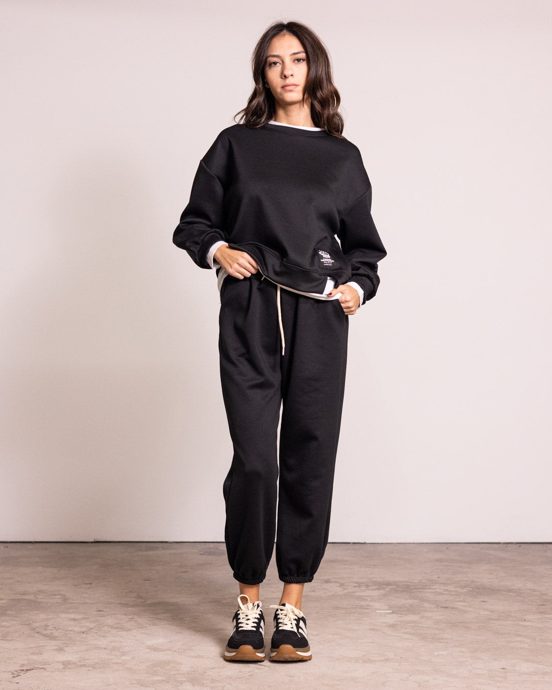 Tuta completa in tessuto di qualità, caratterizzata da un design innovativo con finta t-shirt integrata che crea un effetto stratificato sofisticato. I pantaloni presentano polsini elasticizzati che garantiscono una vestibilità precisa e confortevole alle caviglie. Perfetta per chi ricerca un capo versatile che unisce praticità e stile contemporaneo, ideale sia per occasioni casual che per un look più ricercato.