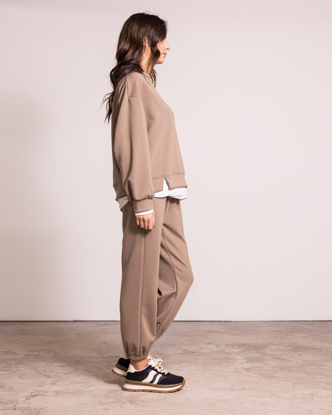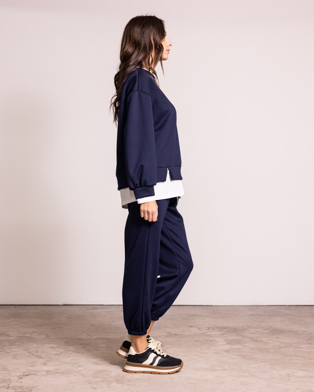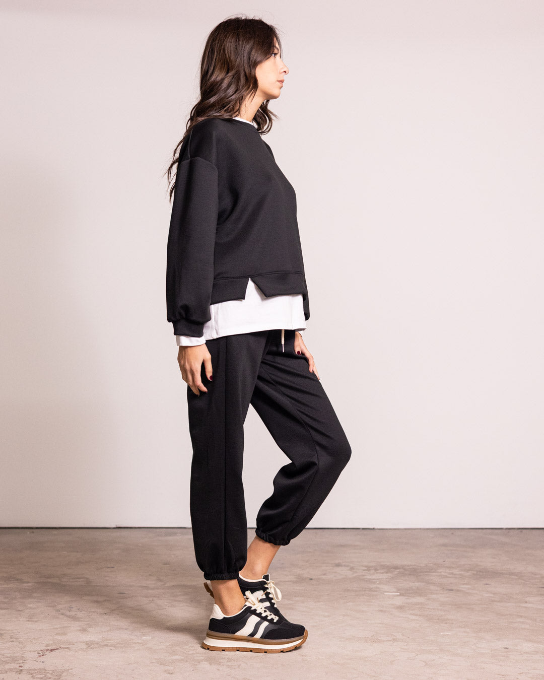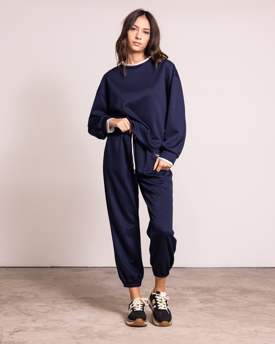 Tuta completa in tessuto di qualità, caratterizzata da un design innovativo con finta t-shirt integrata che crea un effetto stratificato sofisticato. I pantaloni presentano polsini elasticizzati che garantiscono una vestibilità precisa e confortevole alle caviglie. Perfetta per chi ricerca un capo versatile che unisce praticità e stile contemporaneo, ideale sia per occasioni casual che per un look più ricercato.